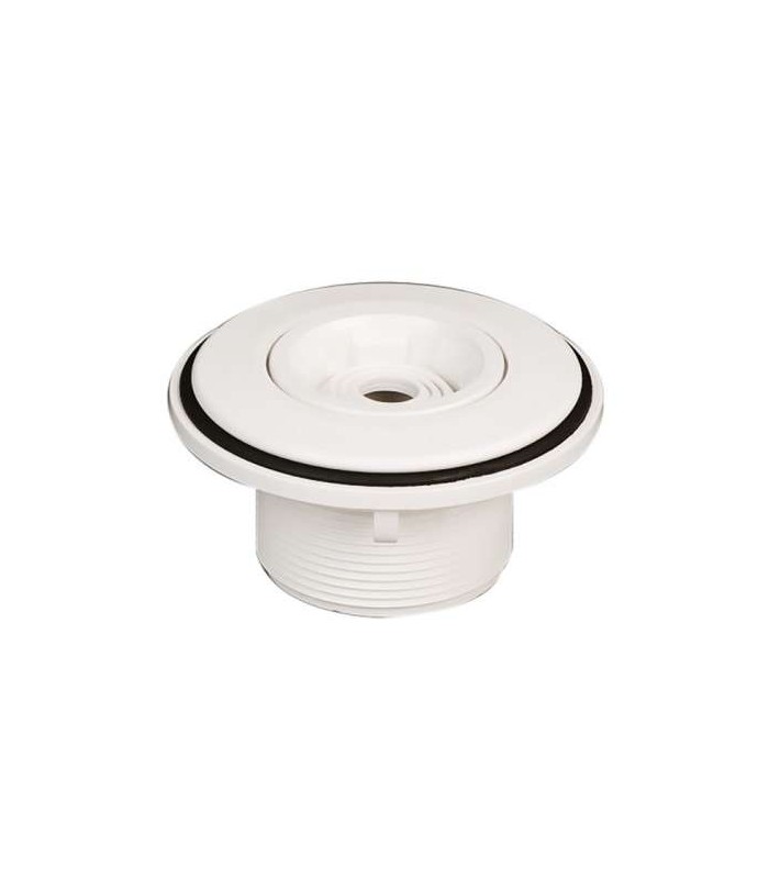 MULTIFLOW SYSTEM Este sistema consiste en que la bola de la boquilla se suministra premarcada con una serie de diámetros (14-20 y 25). Con la ayuda de un punzón (también suministrado junto a la boquilla) se puede seleccionar uno de los diámetros en el momento de la instalación. Caudal máx. recomendado para una velocidad de paso máx de 4 m/seg., según norma UNE 13451-1: Ø 14= 2,2 m3/h, Ø20 = 4,5 m3/h, Ø25 = 7 m3/h. Código 00334:Rosca exterior 2", e interior encolar Ø 50. Construidas en ABS color blanco. Código 06481: Rosca exterior 2", y rosca interior de 11/2". Construidas en ABS color blanco, con juntas. Los orificios de la rejilla no superan los 8 mm segun UNE 13451-1.