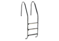 Escaleras con pasamanos modelo Standard, para piscinas enterradas, fabricadas en tubo Ø 43mm de acero inoxidable acabado pulido brillante.