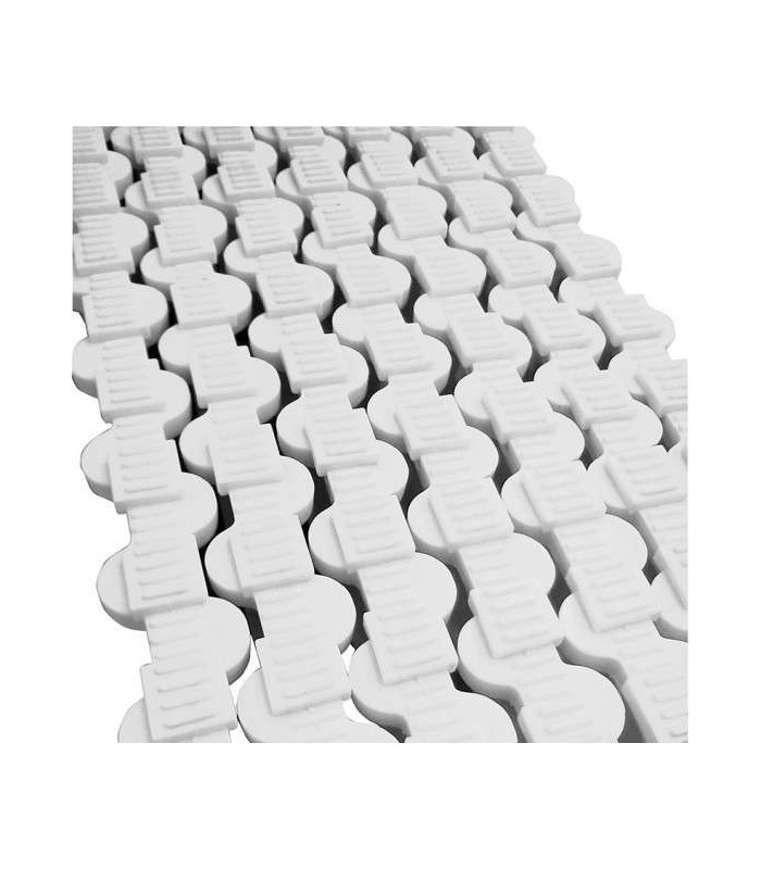 REJILLA PISCINA PARA CURVAS ALTO 35MM ANCHO 195MM. En PP con estabilizantes para la protección contra los rayos UV. Unión por acoplamiento de ajuste entre módulos. Según normativa EN-13451-1 (8 mm). Resistencia al deslizamiento CLASE 3 (Rd>45) según la UNE-ENV 12633 tal y como se especifica en la sección SU1 del Código Técnico de la Edificación vigente. >