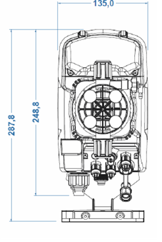 Bomba dosificadora con caudal constante, que se puede ajustar manualmente mediante un potenciómetro montado en el panel frontal, además dispone de la entrada de control de nivel mínimo de químico (no incluido)