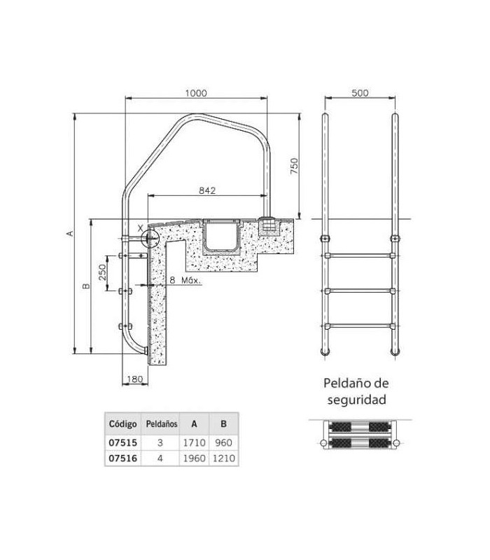 ESCALERA MODELO 1000 PARA REBOSADERO 3 PELDAÑOS LUXE+1 SEG.. 07516