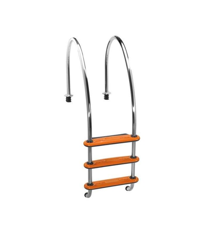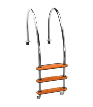 - Estilo compacto y original, con peldaños antideslizantes en atractivo color naranja que facilita la localización del peldaño dentro del agua.
