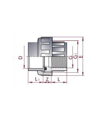 | D x G | Código | DN | PN | L | L1 | Z | G1 | E | Junta |