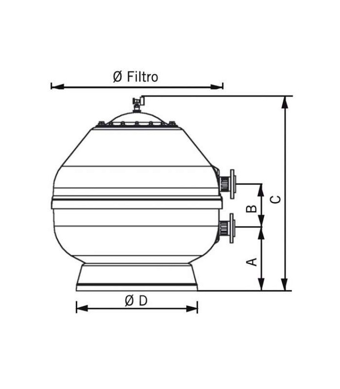 Filtro Vesubio Ø 500 Salida Lateral 1 1/2" Válvula Tornillos. Número de referencia 19353CP