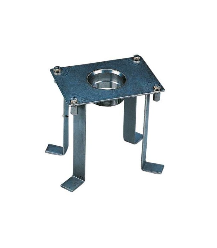 Fabricado en acero inoxidable AISI-316. Compuesto por la base empotrable en el suelo, tornillos, arandelas y toma de tierra. Conexión inferior 2 1/2''.