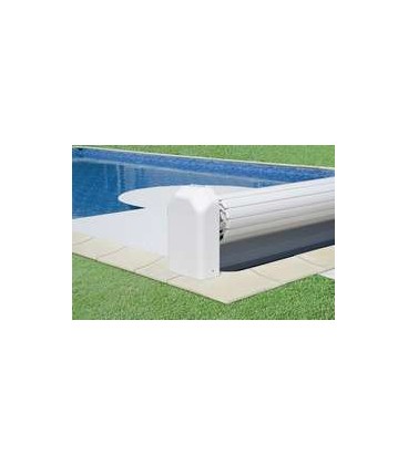 Motor ubicado a pie del eje de enrollamiento. Ideal para piscinas existentes de hasta 7,5 metros de ancho. Se compone de: - Dos soportes en aluminio lacado blanco, RAL 9016, con pletinas inferiores preparadas para ser fijadas sobre la piedra de coronamiento, equipados con dos cubiertas de poliéster blanco. - Eje de enrollamiento en aluminio anodinado para piscinas de hasta 5 m y motor reductor de 24 V de 120 Nm con fin de carrera. - Eje de enrollamiento en inox de diámetro 168 mm para piscinas de ancho superior a 6 m, más motor reductor de 24V de 250 Nm con fin de carrera. - Armario eléctrico de alimentación de 220/24V - Interruptor de control situado a distancia, con visión sobre la piscina, de 3 posiciones de tipo mantenido según norma francesa NF P90-308.