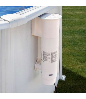 Skimmer filtrante de cartucho compacto Gre. Nº de referencia AR125. Filtro de cartucho compacto de la marca Gre concebido para piscinas elevadas con un volumen de agua medio-inferior. Es muy senzillo de utilizar y su mantenimiento se limita a la limpieza o sustitución del cartucho o del filtro de recambio cuando este queda obstruido por la excesiva carga de suciedad.