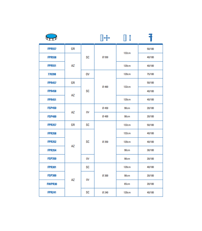 Liner circular Gre azul D.240. Nº de referencia FPR241. Liner azul Gre. Medidas: D.240, altura 120 cm y espesor liner 40/100. Tela de PVC para impermeabilización de la piscina elevada marca Gre, colocación mediante sistema colgante.