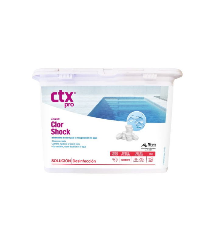 - Valor añadido: Las tabletas CTX-250 con su acción efervescente aseguran que las cloraciones de choque sean muy eficaces.