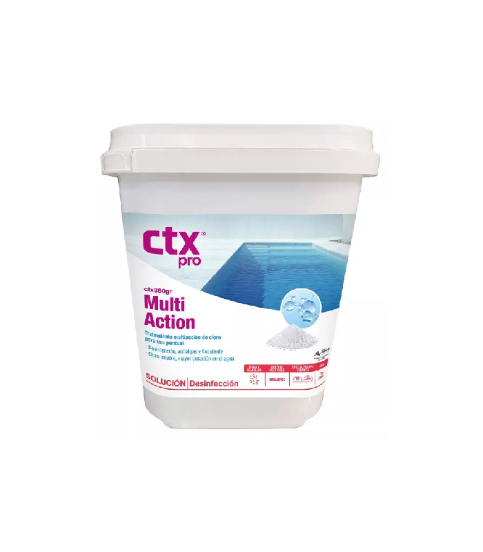 - Tratamiento de mantenimiento: con el pH ajustado, añadir diariamente de 1 a 2 g de CTX-390/GR MultiAction por cada m³ de agua.